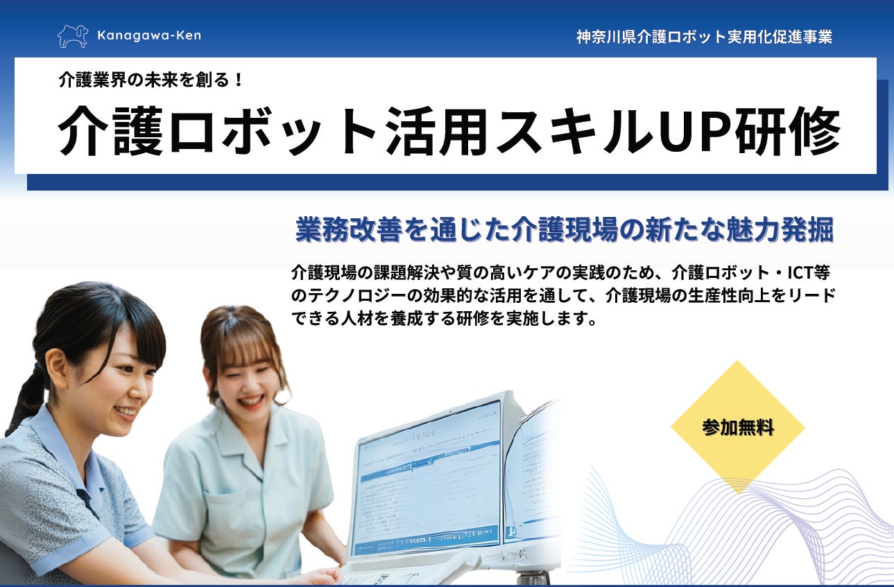 神奈川県介護ロボット実用化促進事業の一環として、介護現場の課題解決や質の高いケアの実践のため、介護ロボット・ICT等のテクノロジーの効果的な活用を通して、介護現場の生産性向上をリードできる人材を養成する研修を実施します。