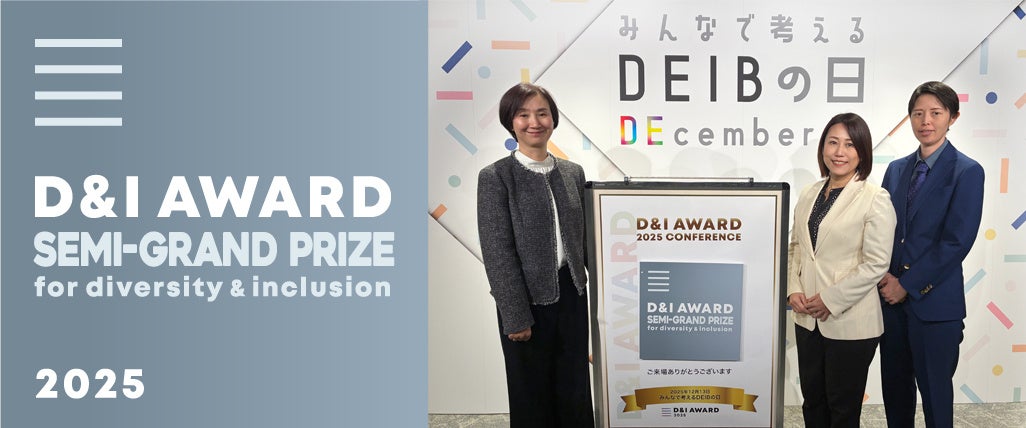 「D&I AWARD(※1)」は、ダイバーシティ&インクルージョンに取り組む企業を認定・表彰する日本最大のアワードです。企業のD&Iにおける「ジェンダー」「LGBTQ+」「障害」「多文化共生」「育児・介護」の5つの取組み要素から100項目の独自指標でダイバーシティスコアが採点され、スコアに応じた認定が授与されます。当社が受賞した「D&I AWARD賞」は、認定企業の中でも、ダイバーシティスコアが高く、かつ企業規模に応じたロールモデルとなる取組みを実施している企業10社に授与されました。