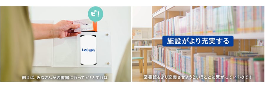 マイナンバーカードを町内の公共施設や介護予防教室、公共交通機関に設置されている専用カードリーダーにタッチすることで、利用者はLoCoPiポイントをためることができ、町は住民の公共施設・サービスの利用状況を把握することができます。これらのデータを基に、施設・サービスの最適化やコスト削減を図り、町民にとってよりよい、持続可能なサービス提供へとつなげます。