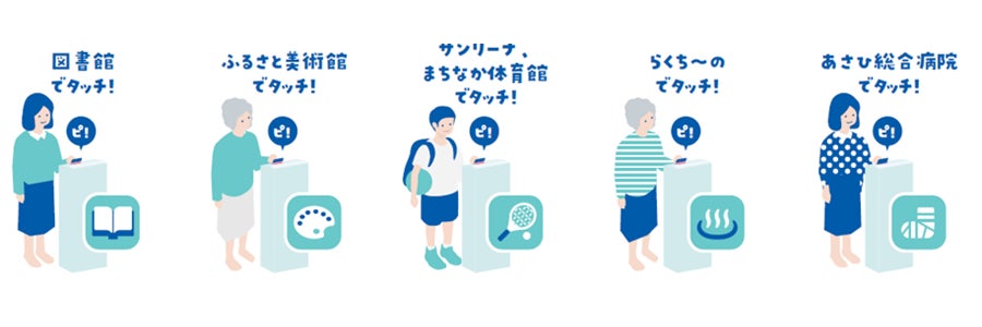 LoCoPiあさひまちは、富山県内で最も高いマイナンバーカード交付率(80.8%※令和5年12月末時点)を誇る朝日町において、全世代の住民を対象にした公共サービスパスです。朝日町内の学校等の公共施設約30か所に設置した専用のカードリーダーで利用者が自身のマイナンバーカードをタッチすることで、サービスを利用することが可能です。2022年度のデジタル田園都市国家構想(Type3)で実装した子どもから大人までが学びあい/助けあう共教育プログラム「みんまなび」などのデジタルサービスもLoCoPiあさひまちで簡単に利用できるなど、デジタルを活用しながら、誰でも簡単に利用できるサービス設計により、マイナンバーカードを前向きに、楽しく活用する町づくりを進めてまいります。