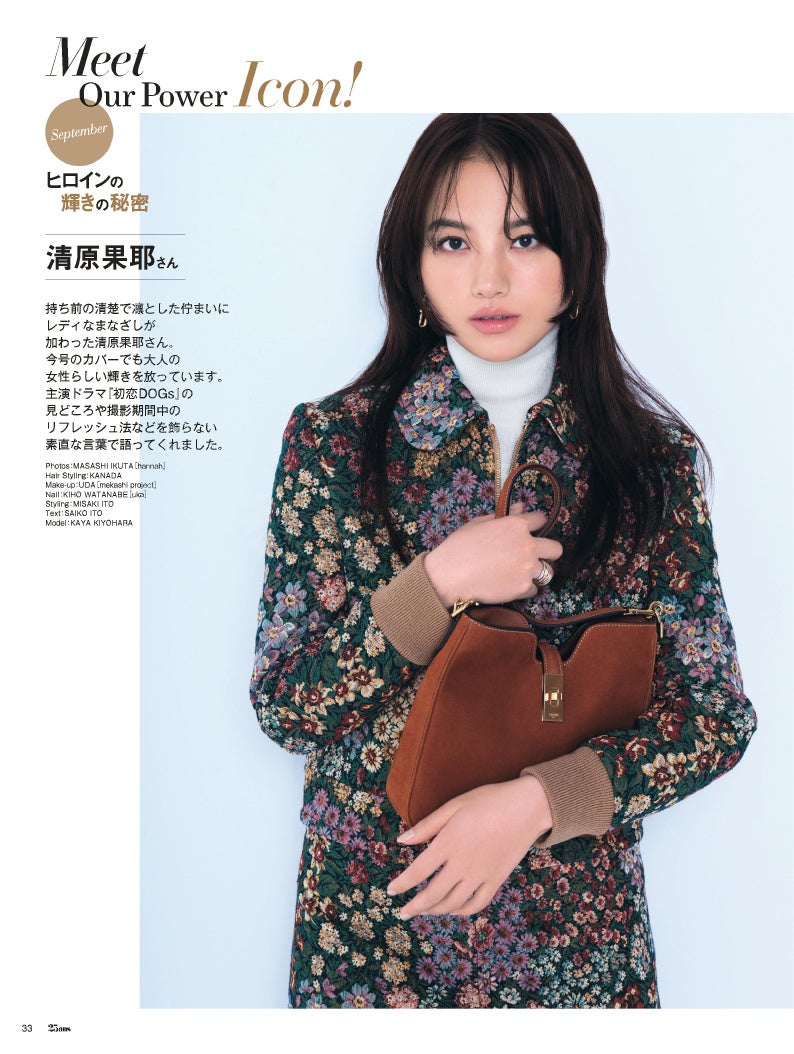 持ち前の清楚で凛とした佇まいにレディなまなざしが加わった清原果耶さん。今号のカバーでも大人の女性らしい輝きを放っています。主演ドラマ『初恋DOGs』の見どころや撮影期間中のリフレッシュ法などを飾らない素直な言葉で語ってくれました。