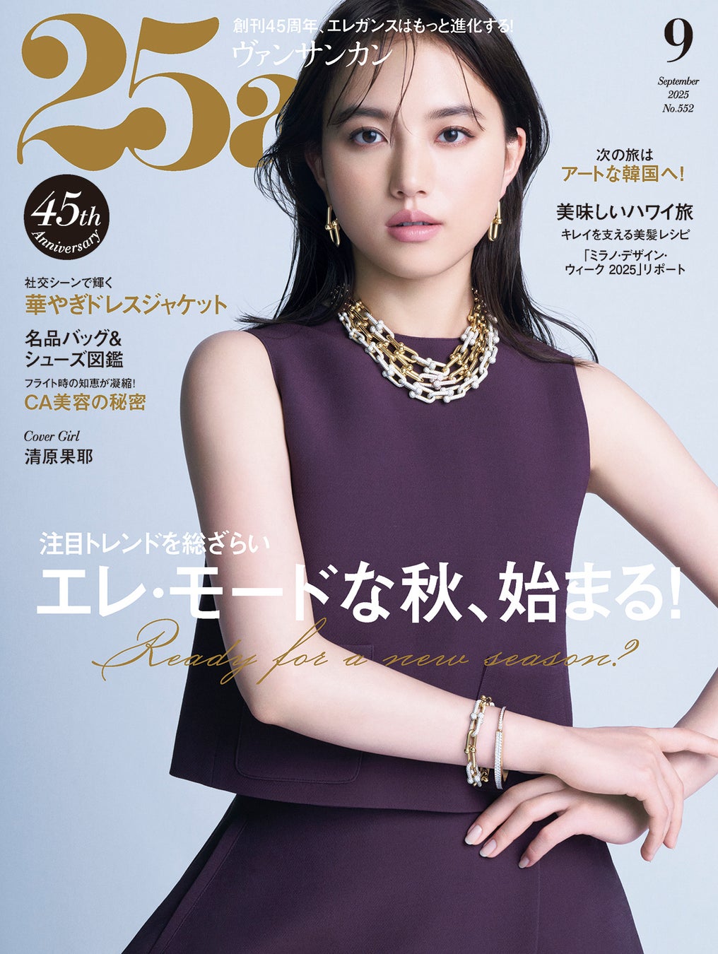 全世代のエレガントな女性たちに支持されるクラスマガジン『25ans(ヴァンサンカン)』(発行:株式会社ハースト婦人画報社、本社:東京都港区、代表取締役社長:ニコラ・フロケ)は、清原果耶さんがカバーガールに登場する9月号を7月28日(月)に発売します。