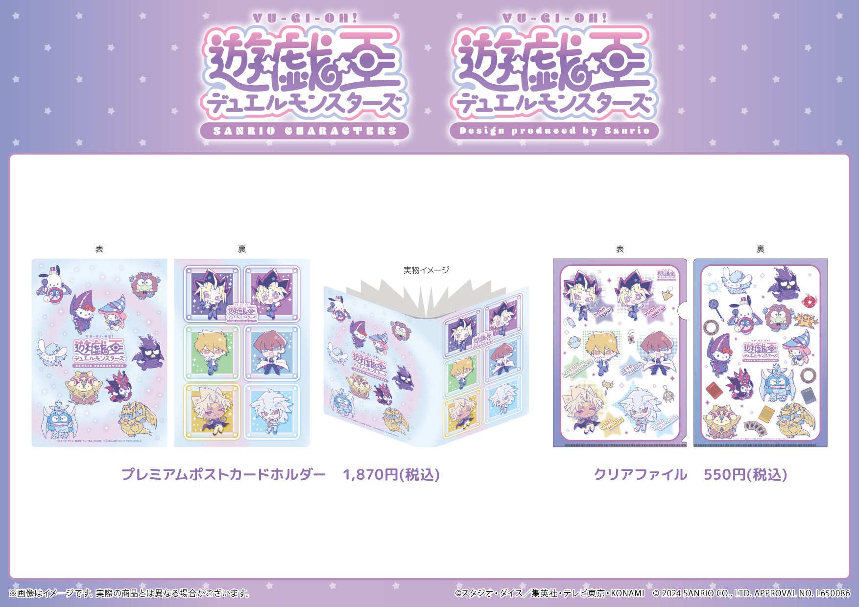 今回はデフォルメタッチでキュートに描かれた遊戯たちと、モンスターの格好をしたサンリオキャラクターズにご注目。また、購入特典として限定ポストカード(全3種)も用意されていますので、お気に入りのグッズと一緒にぜひGETしてください!
