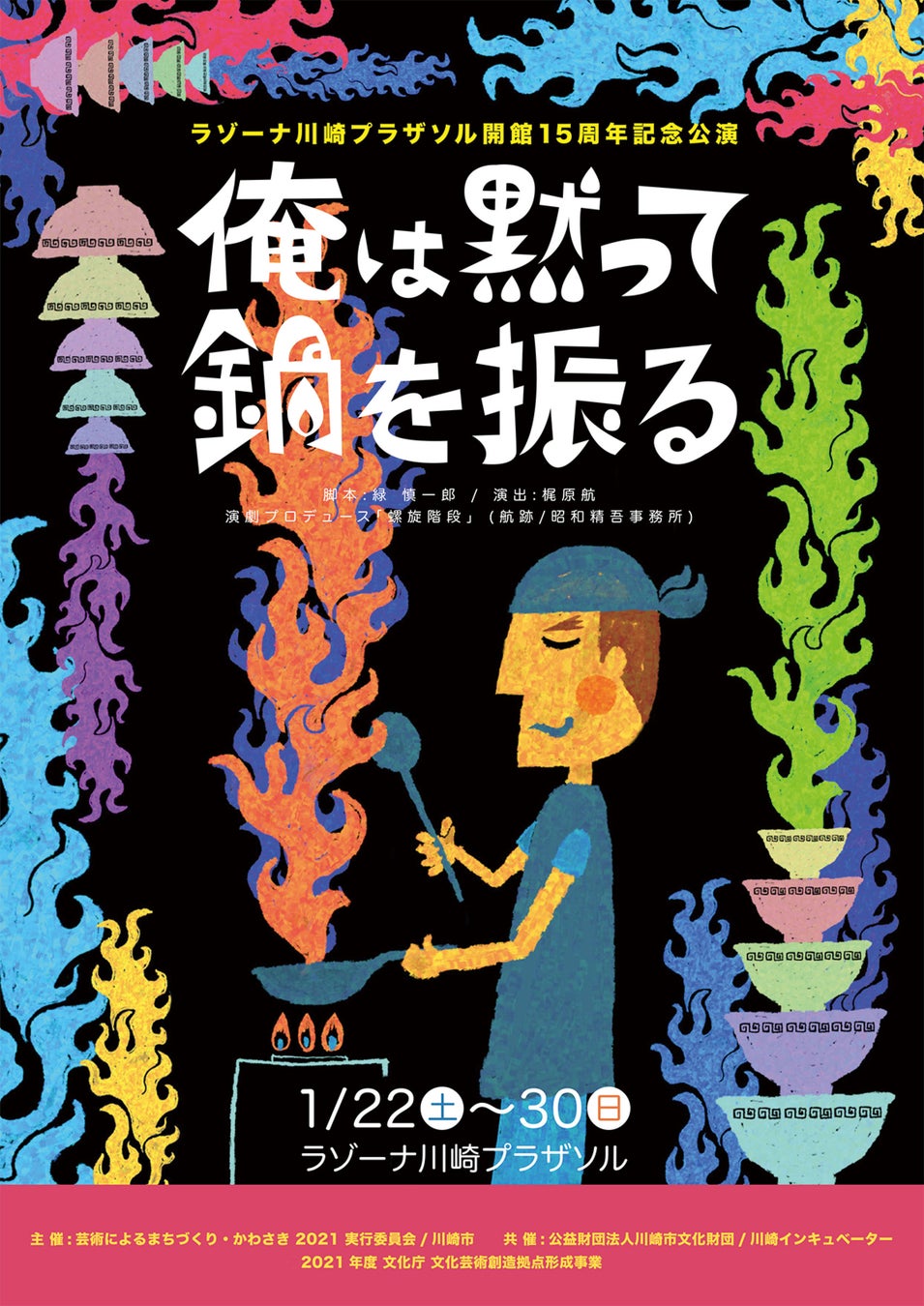 ラゾーナ川崎プラザソル開館15周年記念公演『俺は黙って鍋を振る』が2022年1月22日(土)~1月30日(日)にラゾーナ川崎プラザソル(神奈川県川崎市)にて上演されます。チケットはカンフェティ(運営:ロングランプランニング株式会社、東京都新宿区、代表取締役:榑松 ⼤剛)にて発売中です。