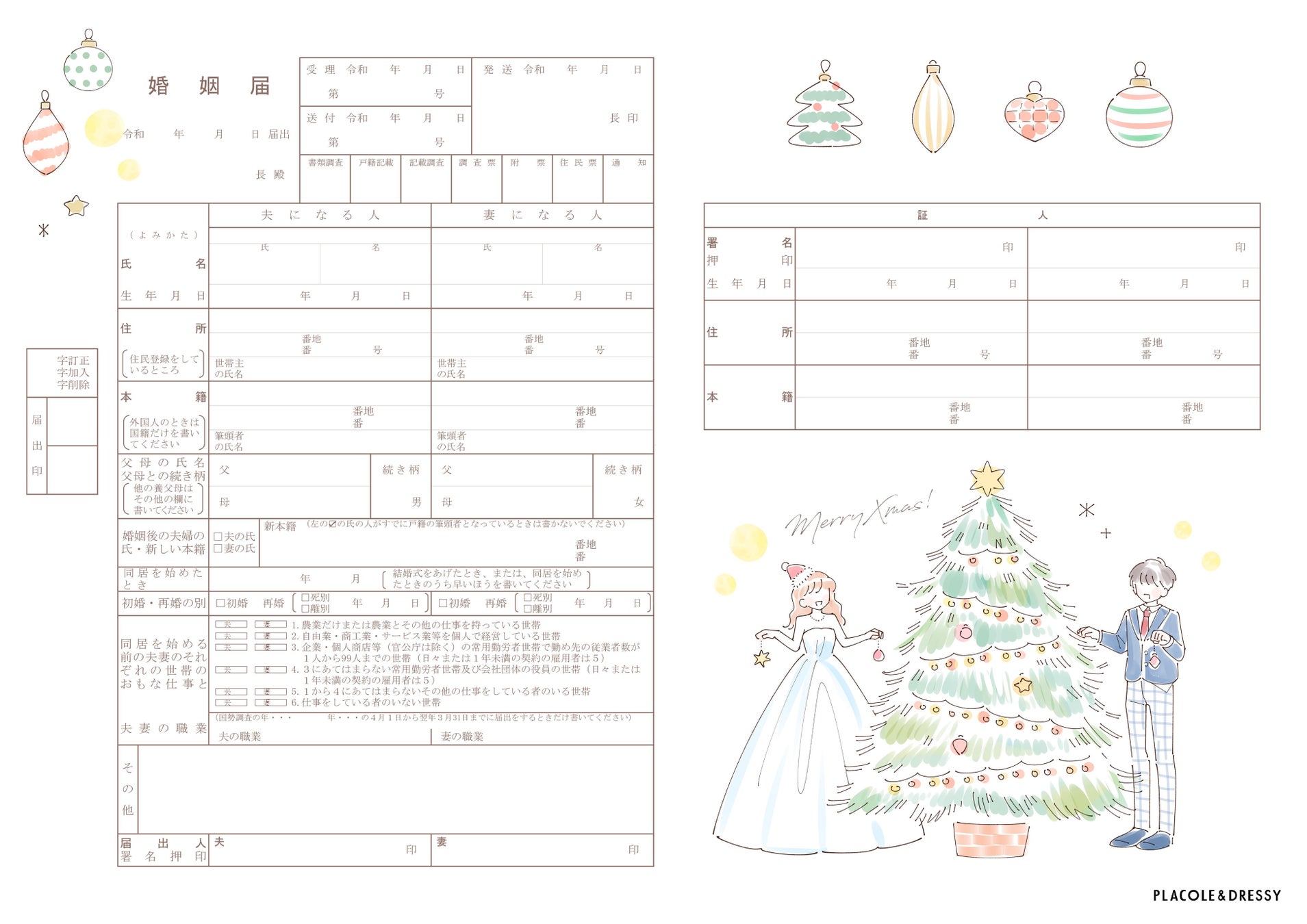【ダウンロード無料】PLACOLE&DRESSYオリジナル 『プラコレ婚姻届』に新デザインの婚姻届に12月の新デザインが登場!