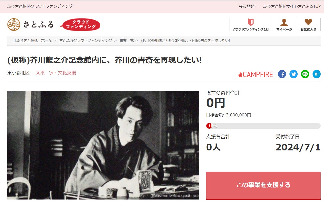 東京都北区とさとふる、北区にゆかりのある偉人「芥川龍之介」「渋沢栄一」の功績を遺すため2事業で寄付受け付けを開始