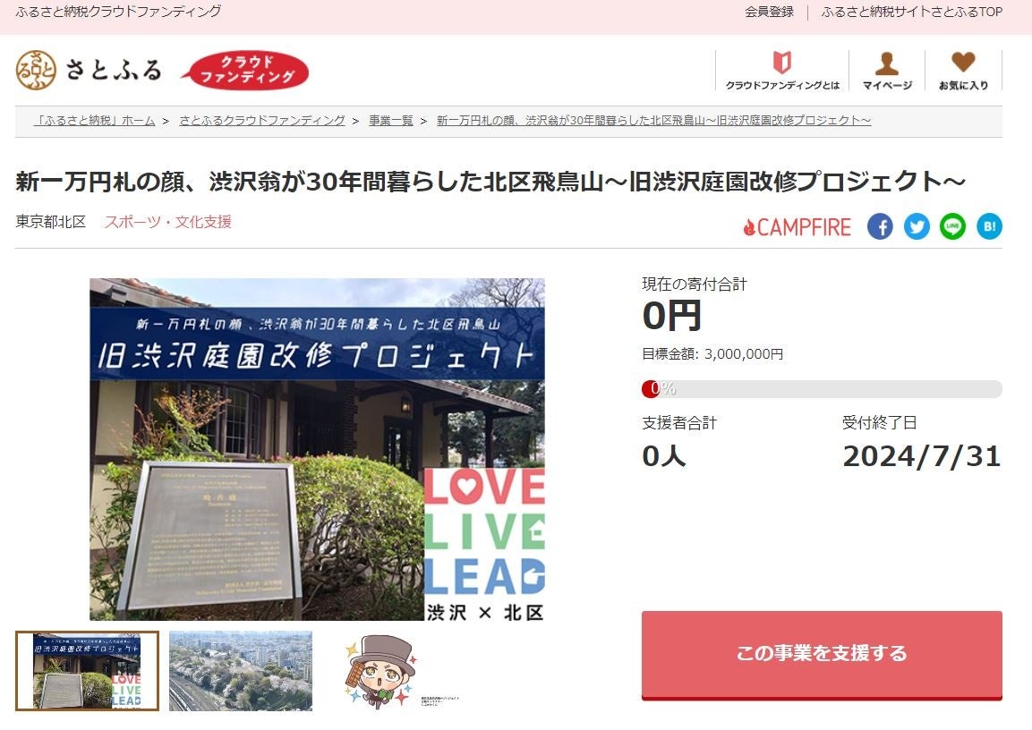 北区ゆかりの偉人である渋沢翁の精神および渋沢翁が30年間生活の拠点とした区の魅力を広く発信するためにクラウドファンディングを実施します。