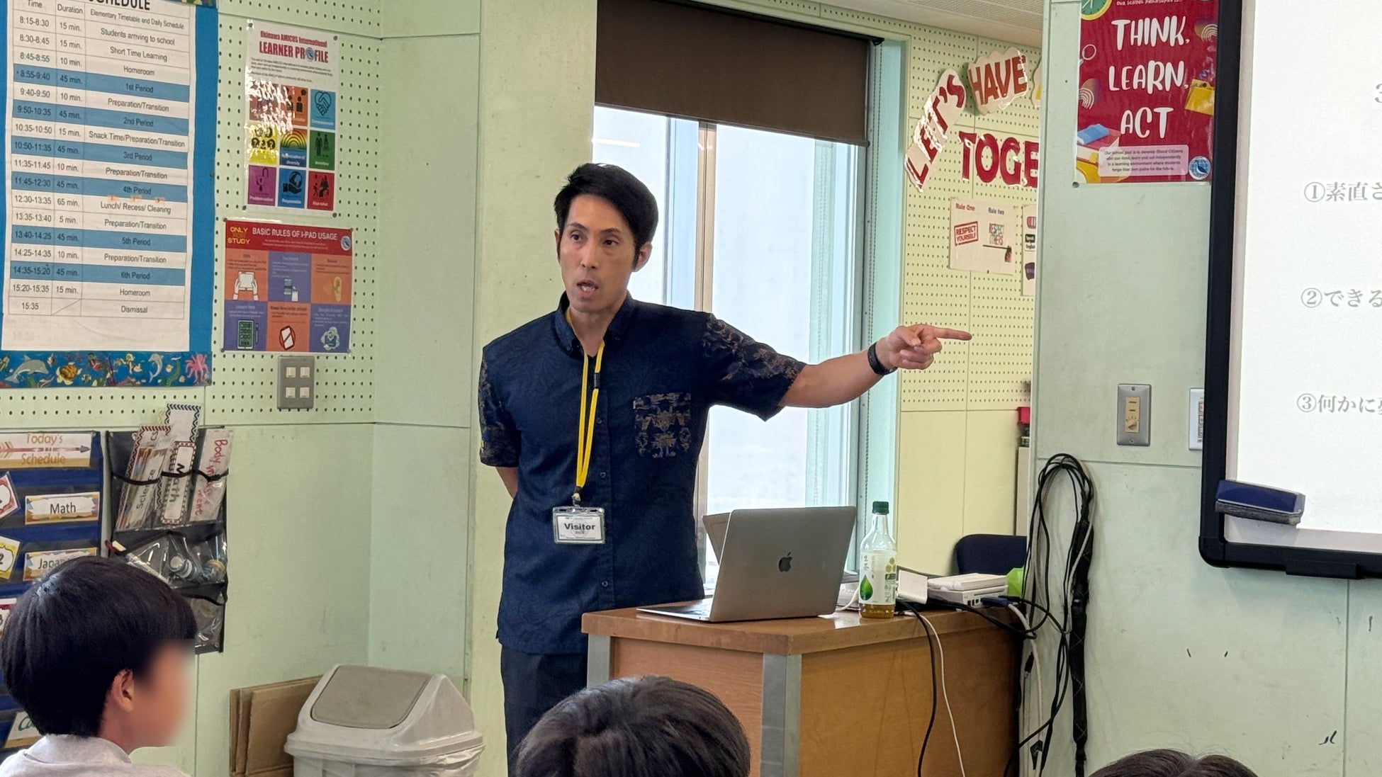 沖縄アミークスインターナショナルスクールの「キャリアフェア2024」では、小学6年生と中学1年生を対象に講話を行いました。自分の強みを信じて、目標に向かってやり続ける大切さを伝え、仕事に対するやりがいや、日々の学校生活が将来の自分に繋がっているということをお話ししました。