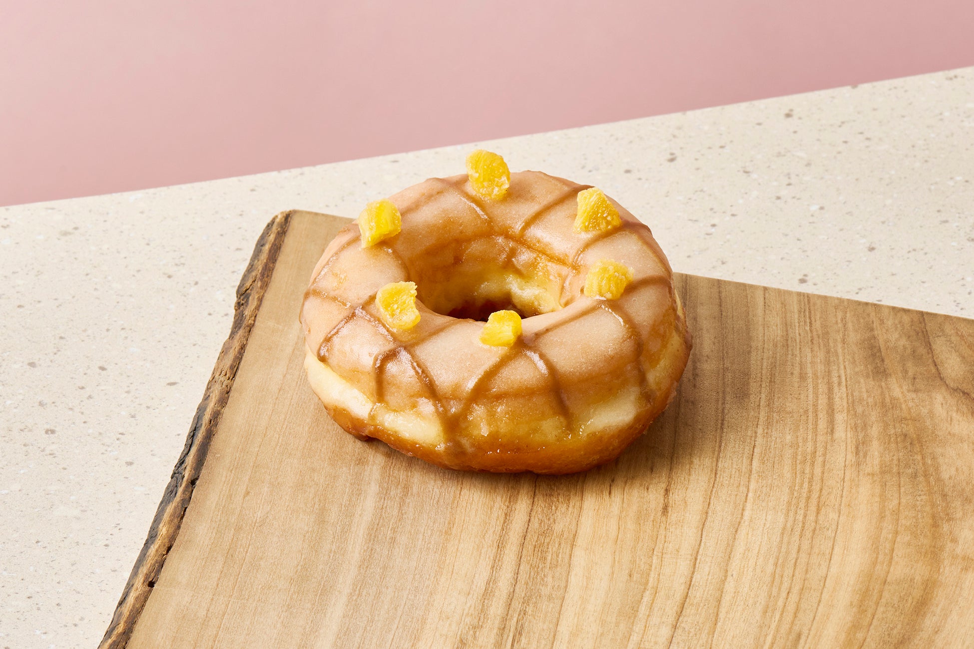 甘酸っぱいパイナップルのグレーズに、コクのある黒糖ソースをあわせました。トッピングにパイナップルをのせた見た目にもかわいいドーナツです。