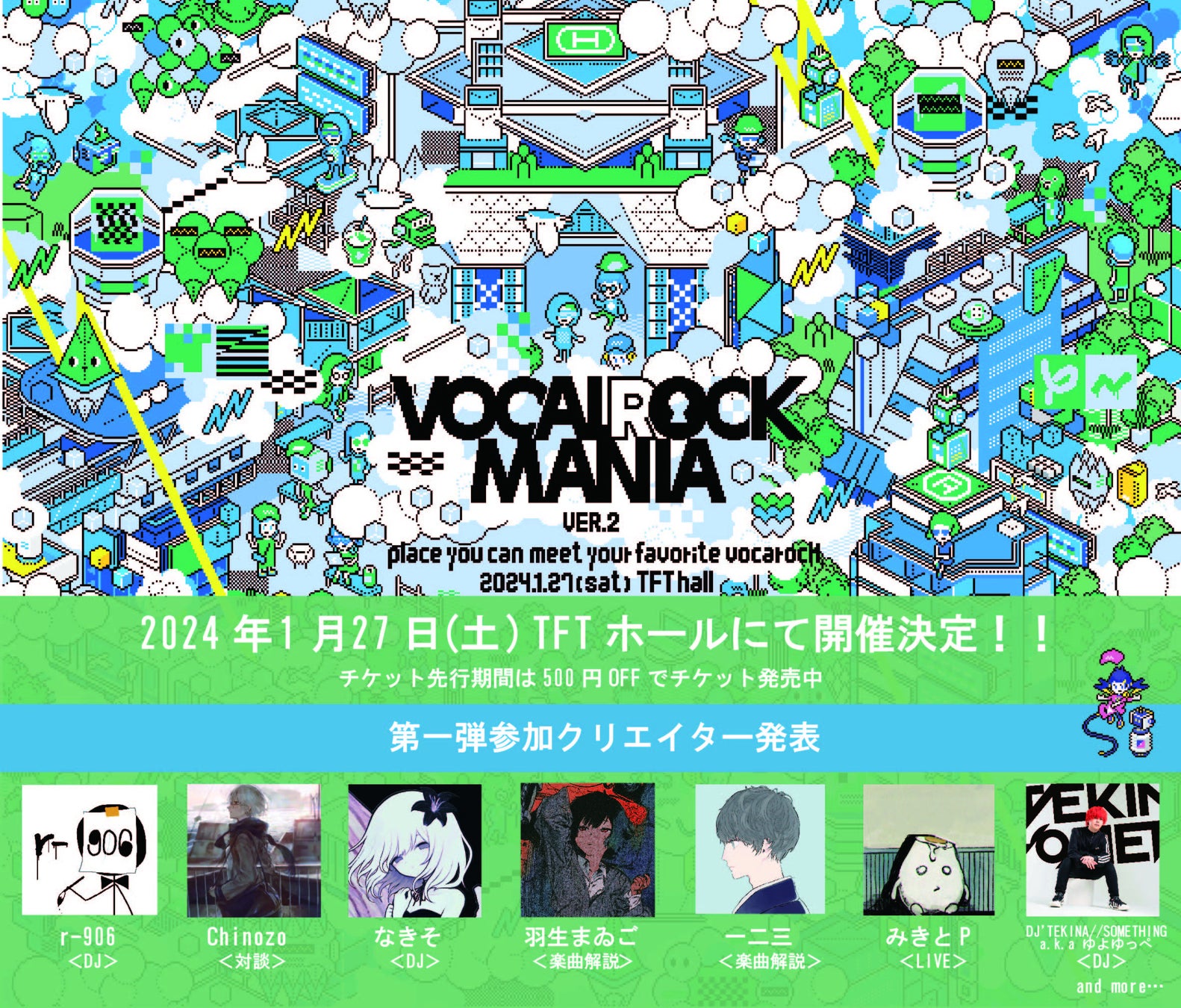 先日、2024年1月27日開催されることが発表されたボカロPをフィーチャーしたイベント「VOCALOCK MANIA」より派生した「VOCALOCK MANIA DJ NIGHT」が東急歌舞伎町タワー3F namco TOKYOで開催されることが決定した。