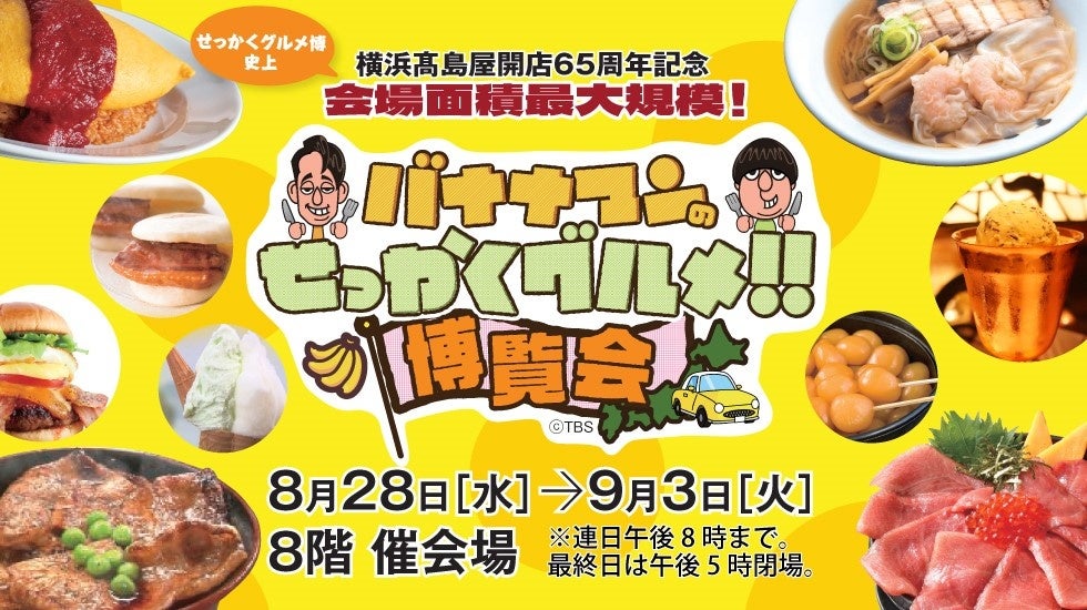 現在放送中のTBSテレビの人気番組「バナナマンのせっかくグルメ!!」で、バナナマンの日村勇紀さんや多彩なゲストが堪能した、全国各地のグルメが横浜高島屋に集結!横浜高島屋の開店65周年を記念し、せっかくグルメ博覧会史上最大規模の会場面積での開催となります。