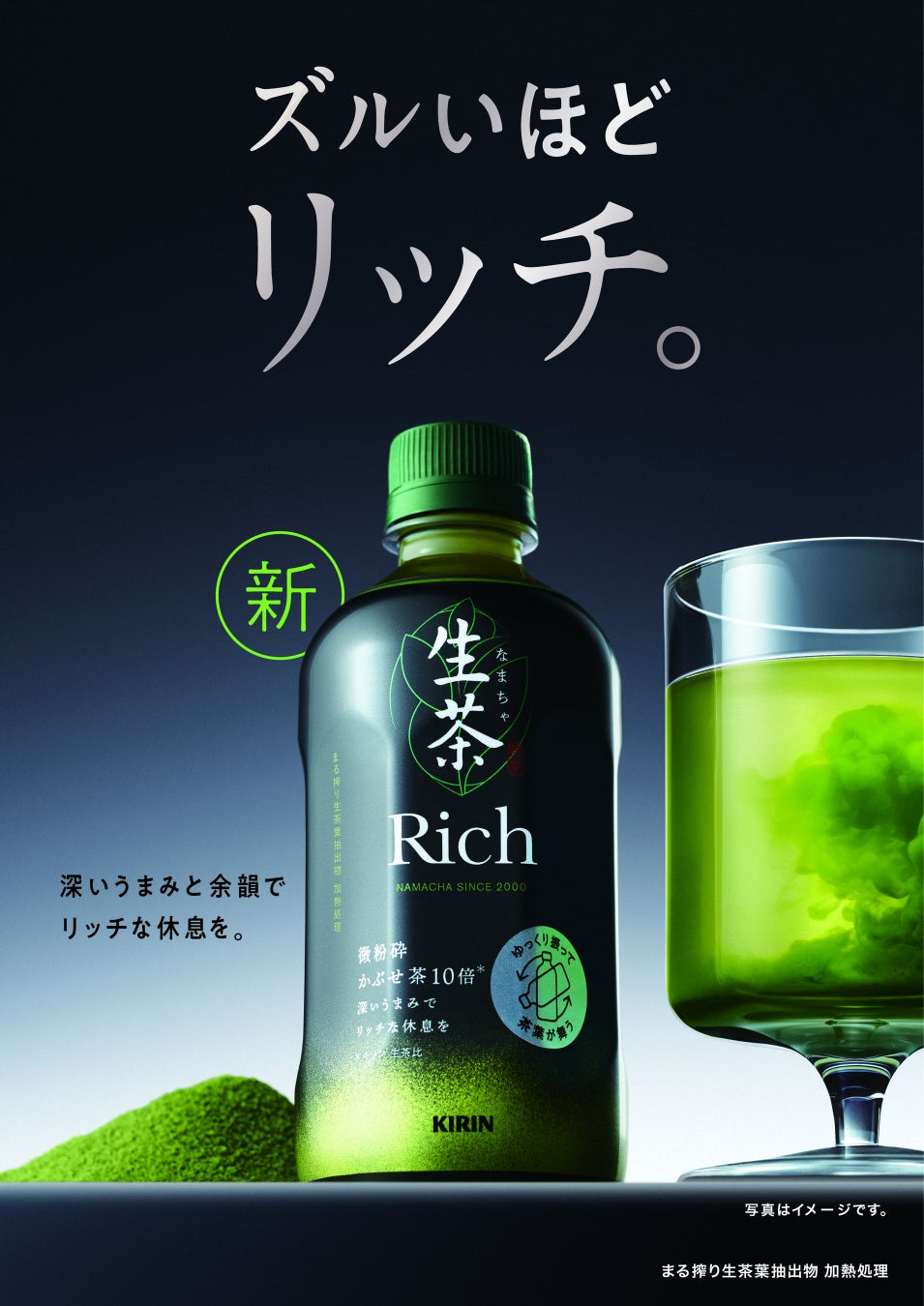 緑茶は、私たちの日常生活に欠かせない飲み物ですが、ペットボトルの緑茶はお客様に、「代わり映えがしない」「ただの水分補給」というイメージを持たれています。「キリン 生茶 リッチ」は緑茶の新しい可能性を広げる提案で、緑茶カテゴリーに新たな選択肢を作りたいという想いで開発しました。発売後、お客様からは、「生茶 リッチ」のおいしさとお気に入りスイーツやお菓子との相性がピッタリ、などの嬉しいお声や、渋くない濃い味わいが、お酒の割材にもよく合う、などの感想もいただいています。一口飲むだけで、おいしさの違いを感じていただけるキリンの自信作です。ぜひ一度、お試しください。