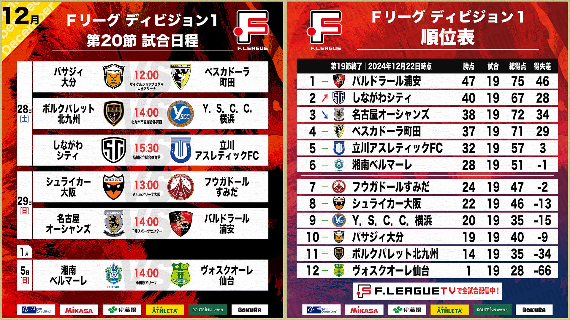 【F1第20節|12月28日〜29日 試合情報】会場情報/チケット情報/注目ポイントは?【Fリーグ2024-2025 ディビジョン1】今こそ最高のフットサルを