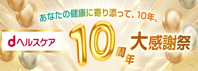 「dヘルスケア」アプリの提供開始10周年を記念して、dポイントがもらえる「dヘルスケア10周年大感謝祭」キャンペーンを順次開催!