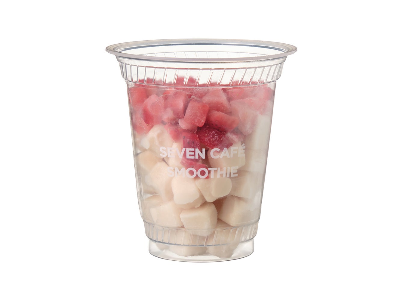 「セブンカフェスムージー」は、急速凍結させることでおいしさとみずみずしさをそのまま閉じ込めた果物や野菜を使用しています。また、ピューレなどを独自技術で凍らせてアイスキューブに加工。専用マシンで商品毎に合わせた時間と速度でかき混ぜることで、素材のおいしさを楽しめるのが特長です。