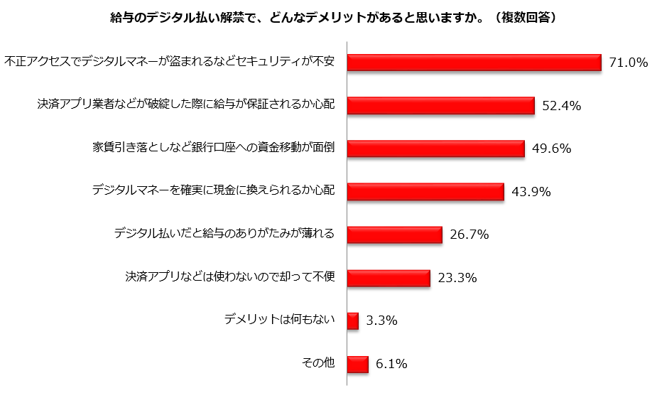 3.給与デジタル払いのデメリット「不正アクセスなど不安」71.0%