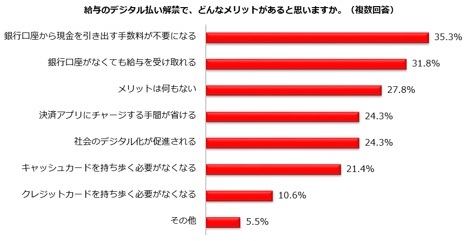 2.給与デジタル払いのメリット「銀行から現金を引き出す手数料が不要」35.3%