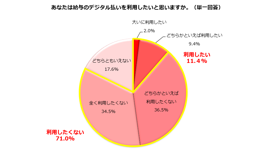 いよいよ解禁!主婦・主夫層は、給与のデジタル払いを利用したい?「利用したくない」71.0%、解禁を「知っていた」46.5%