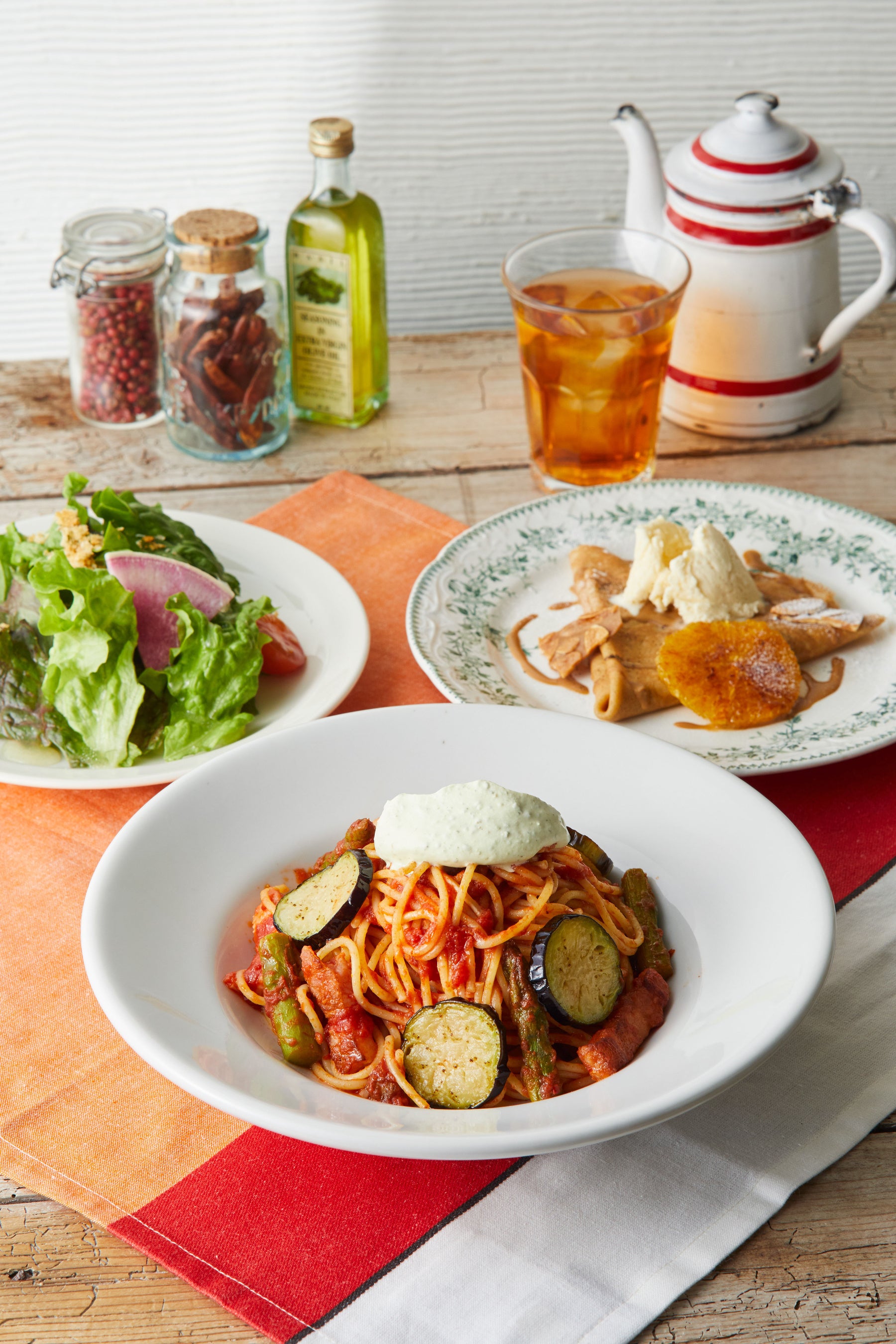 一枚一枚丁寧に焼き上げたこだわりのクレープを、はちみつや発酵バターでシンプルに味わったりフルーツやソースでカスタマイズ。自慢の自家製ミルクレープは、クリームとフルーツを何層も重ねちょっと大きめで見た目も鮮やか。人気のアフタヌーンティー・パスタやティー&コーヒーとともに、ホームメイド・クレープパーラーで幸せなひとときを重ねてください。