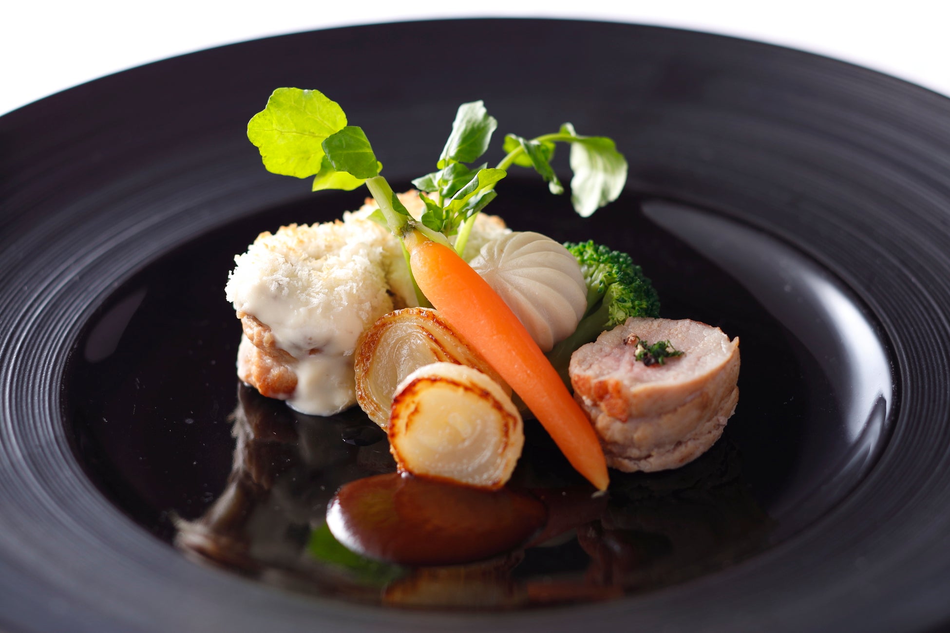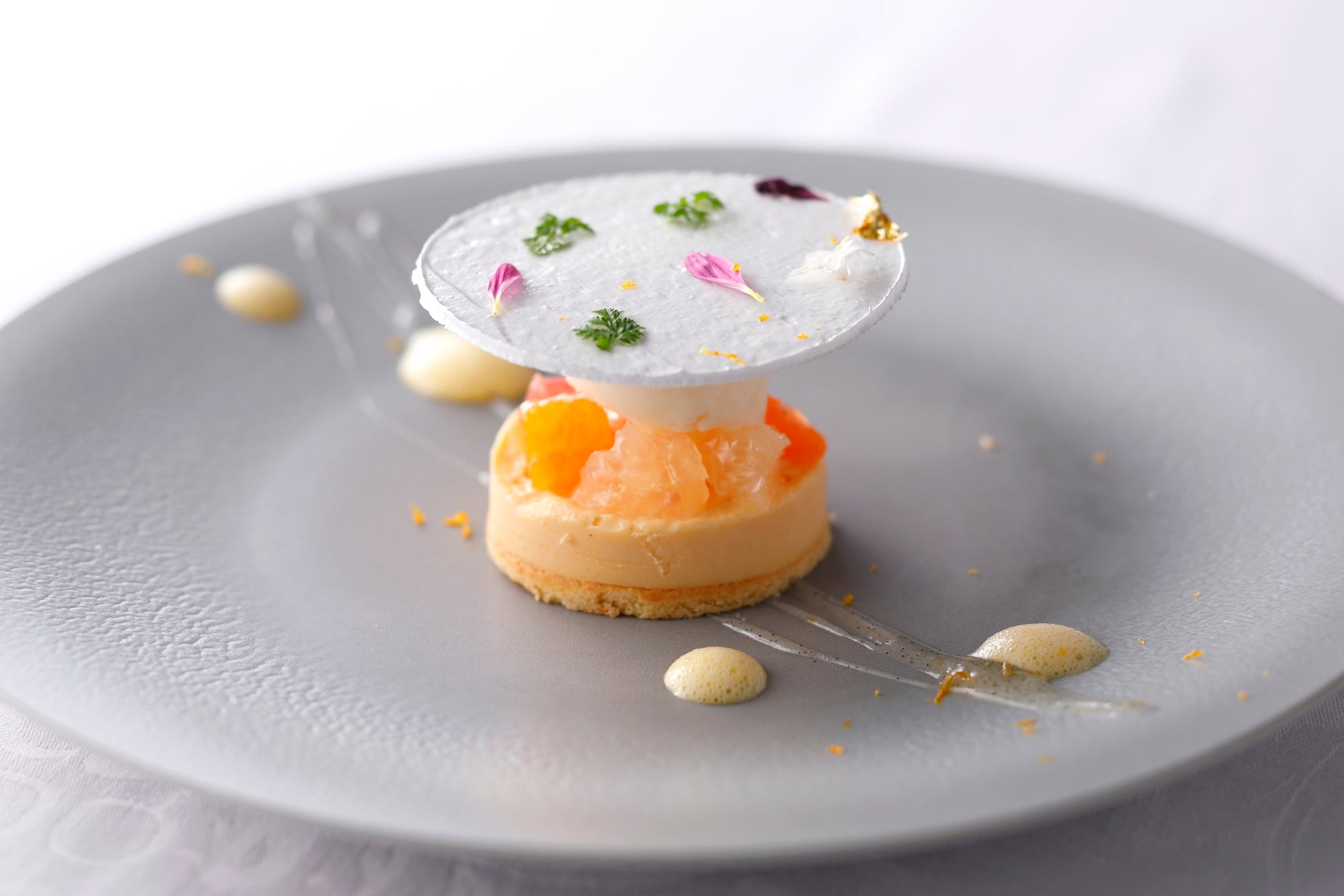 前菜からデザートまで、冬の風情を存分に味わえるメニューを取り揃えました。カレー風味のオイルがアクセントのカリフラワーのポタージュやぶり大根から着想を得た魚料理、仔牛のロース肉を使った香ばしいオルロフ風の味わいが楽しめる肉料理、旬の柑橘と甘酒が楽しめる締めのデザートなど、味わい豊かなひと皿をお楽しみください。