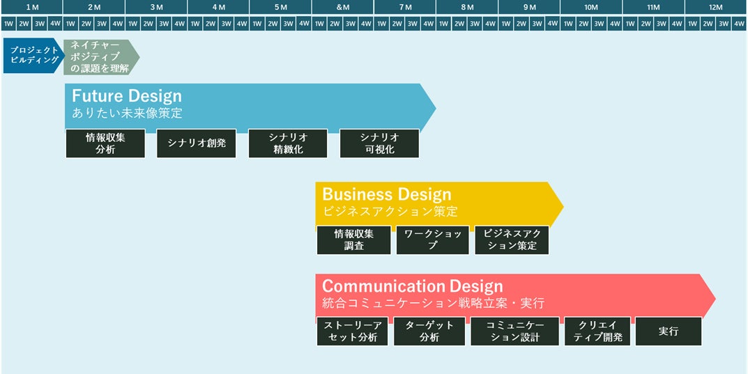 ブランディング、PR、クリエイティブ、メディアなど各領域の専門家が、これら3つのアプローチを通じてネイチャーポジティブの実現とビジネスの創出を一気通貫で支援しながら、企業価値の向上を目指します。