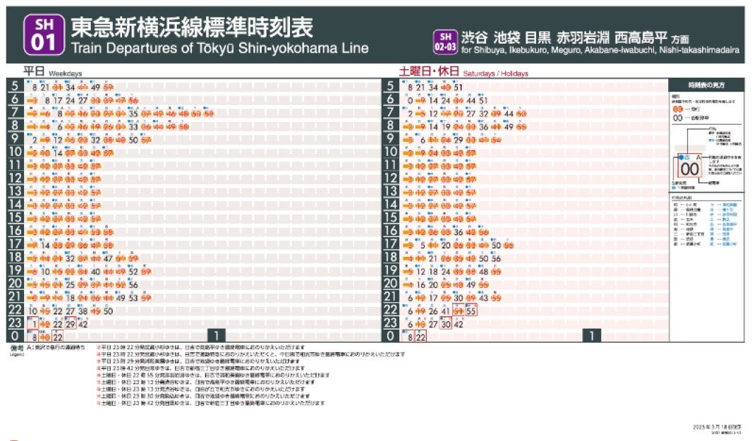 東急新横浜線を含むダイヤ改正後の各駅時刻表を公開します