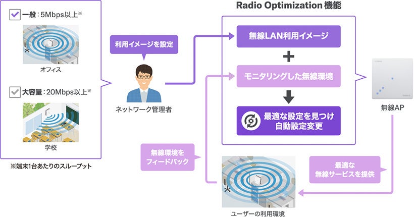『WLX322』『WLX323』は、無線環境を学習し最適化することでトラブルを未然に防ぐ「Radio Optimization機能(以下、RO機能)」(特許出願済み)を搭載しています。