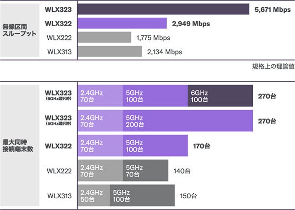1.新たに6GHzに対応、Wi-Fi 6Eへのスムーズな移行も可能(『WLX323』のみ)