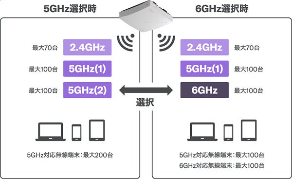 ※6GHz帯を選択した場合でも、5GHz帯はもう一つの無線LANモジュールで利用することができます。