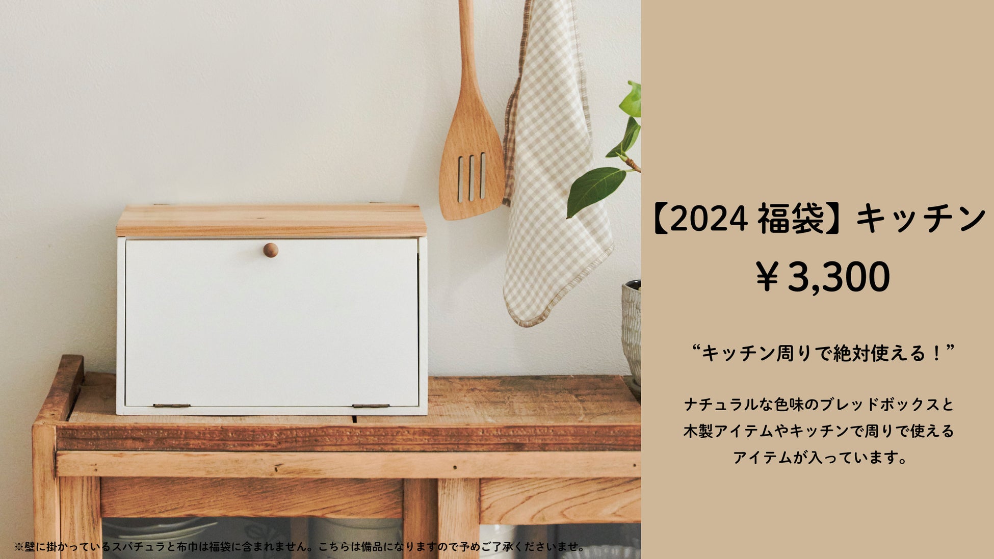 ナチュラルな色味のブレッドボックスと木製アイテムやキッチン周りで使えるアイテムが入ってます。