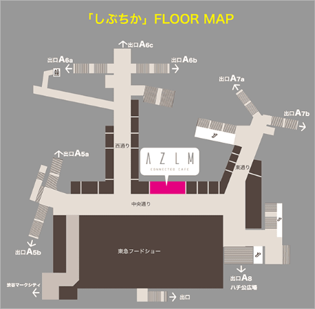 AZLM CONNECTED CAFE 渋谷地下街店 東京都渋谷区道玄坂2-2-1「シブチカ」内(東急フードショー向かい)