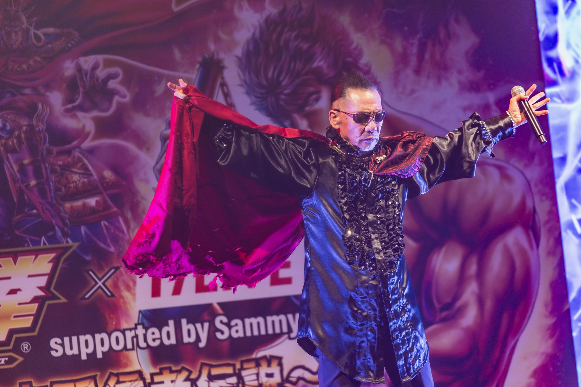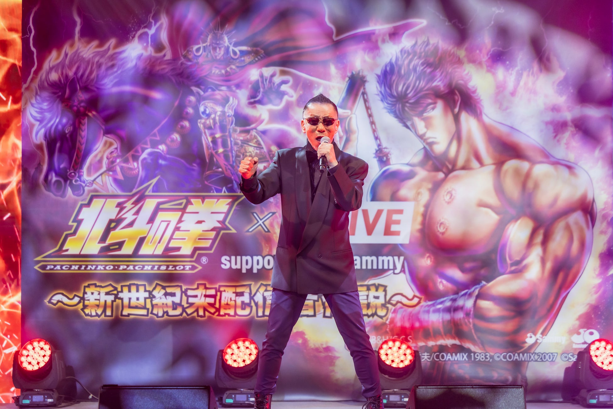 MCからステージで歌唱した感想を聞かれると、「よかったです。いつもディナーショーをやっているので、客席で歌っちゃおうかなと思いました。」と振り返り、「北斗の拳」が愛されている秘訣については、「テーマ曲がいいですね。歌詞も良い。笑」と冗談交じりに語りました。