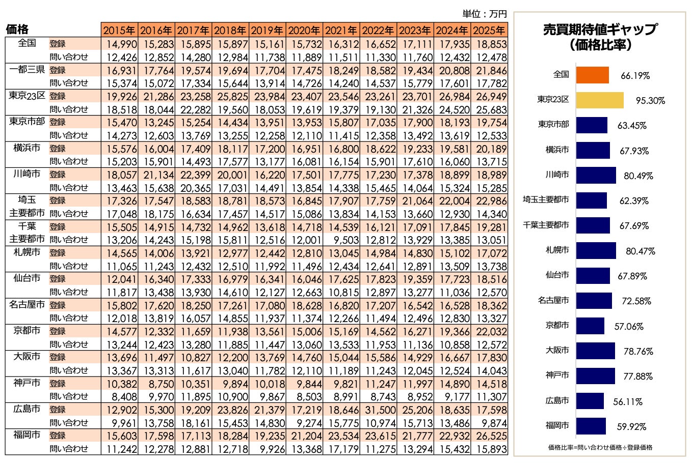 地域別の動向を見ると、首都圏の平均価格は2,793万円となり、前年比16.04%の上昇を記録しました。