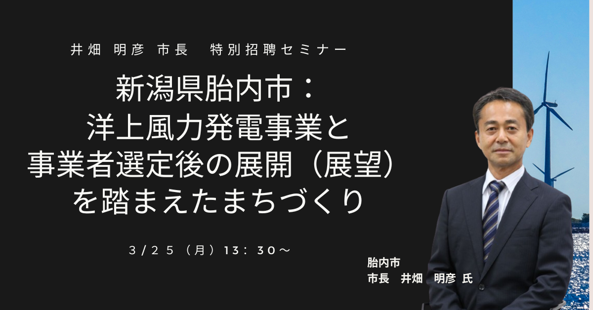 【JPIセミナー】新潟県胎内市「洋上風力発電事業と選定事業者との共創によるまちづくり」3月25日(月) <東京開催>