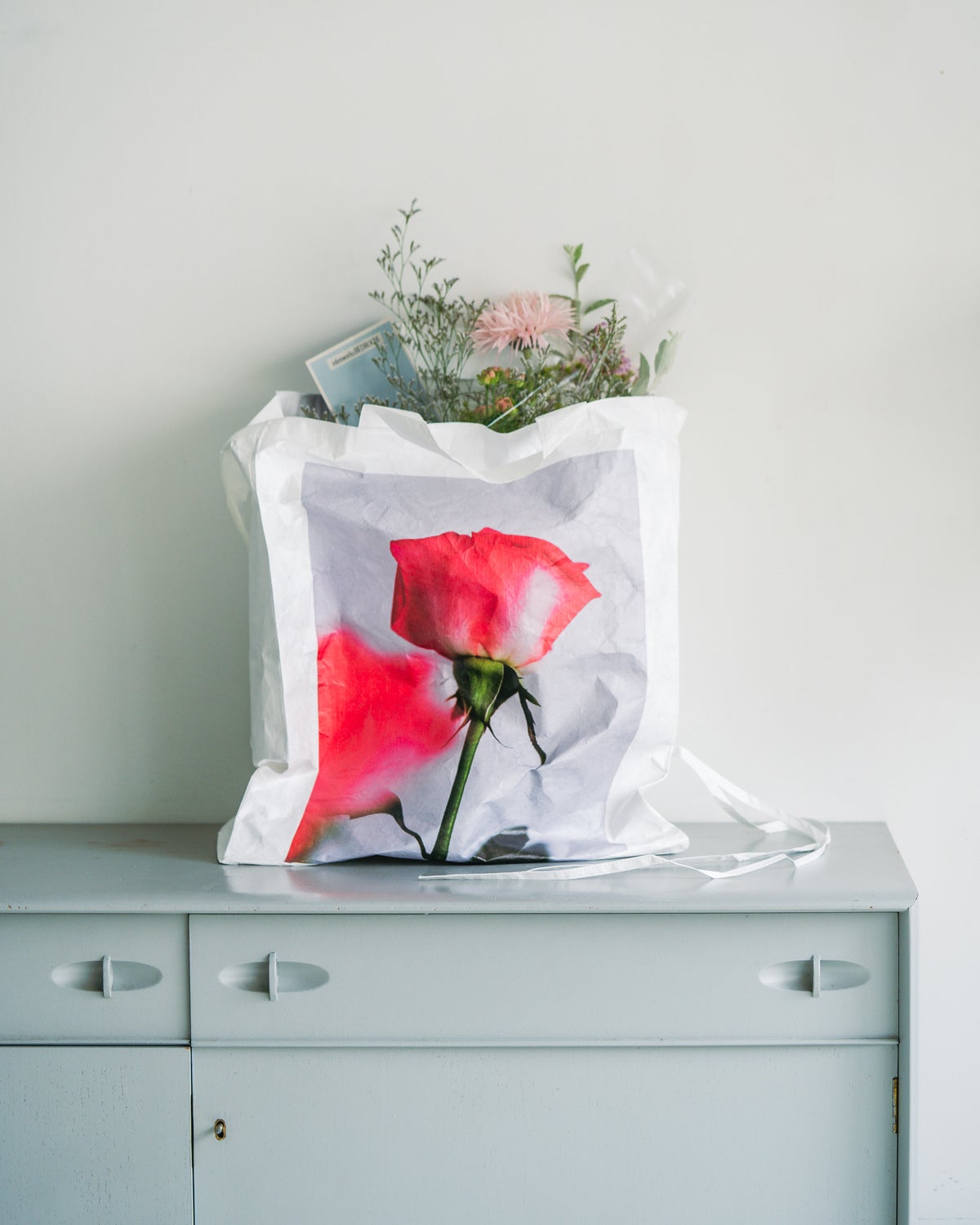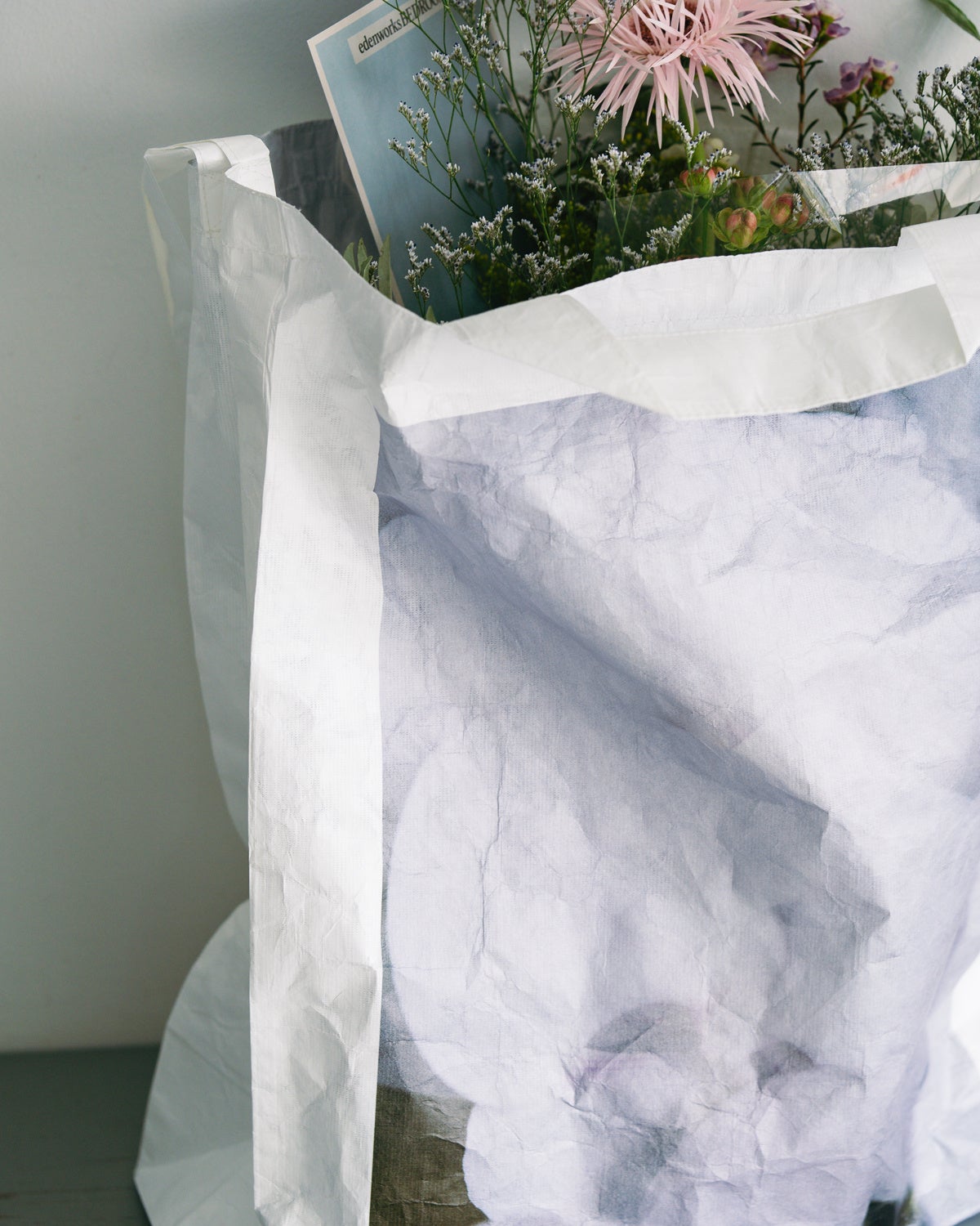ギャルリー・ヴィーのために篠崎恵美氏がアレンジした花の写真をアートのように、フルカラーでプリントしたスペシャルな別注バッグ。