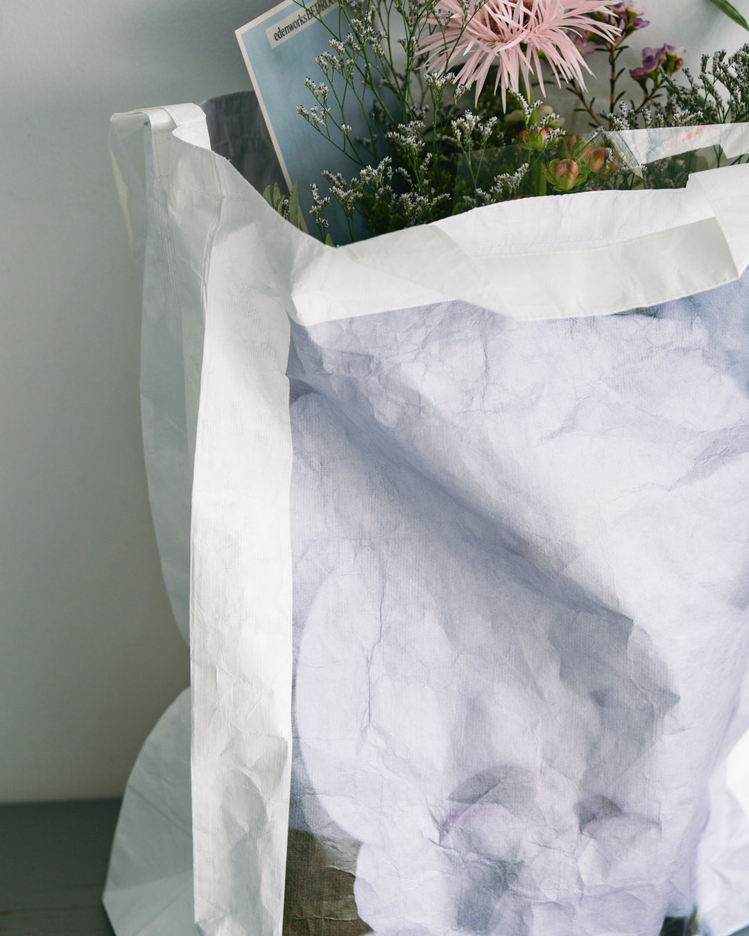 〈conservatory by edenworks(コンサバトリー バイ エデンワークス)〉オリジナルのコンサバトリー バッグは、持ち手が2wayになっており、花束や植物も入る大きなサイズ感が特徴。