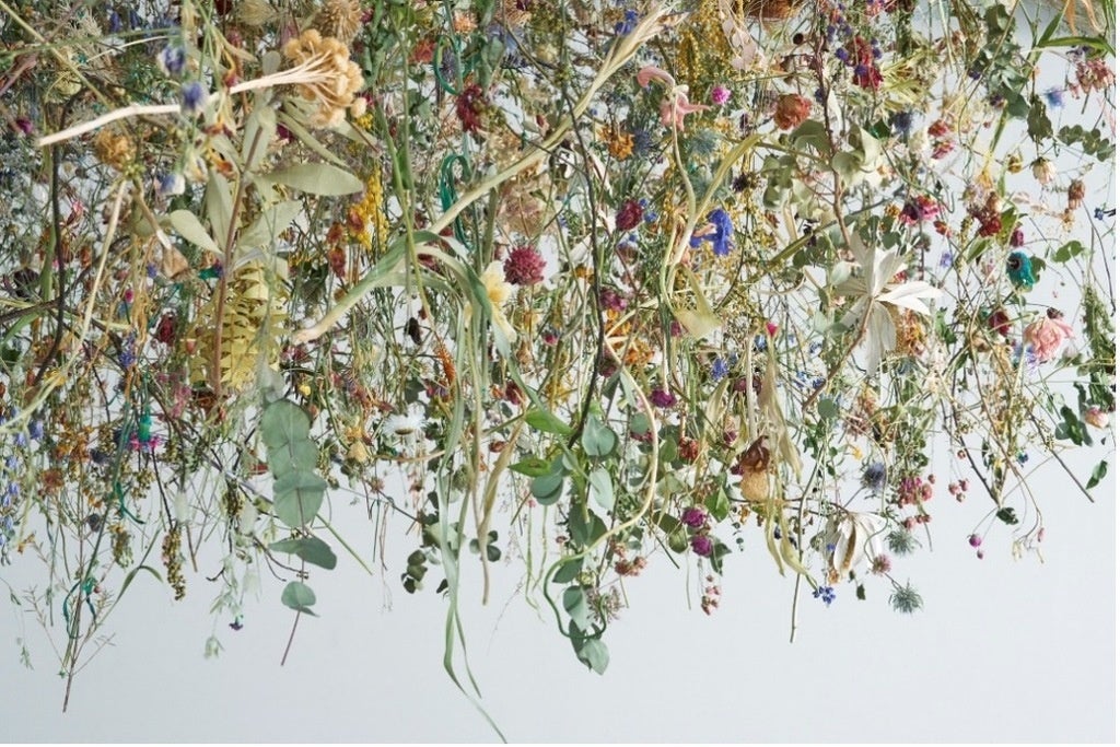 生花からドライフラワーへと移ろいながら、時間の流れとともに美しさを深めていく花々。〈edenworks〉によるインスタレーションは、時を重ねる魅力を映し出します。