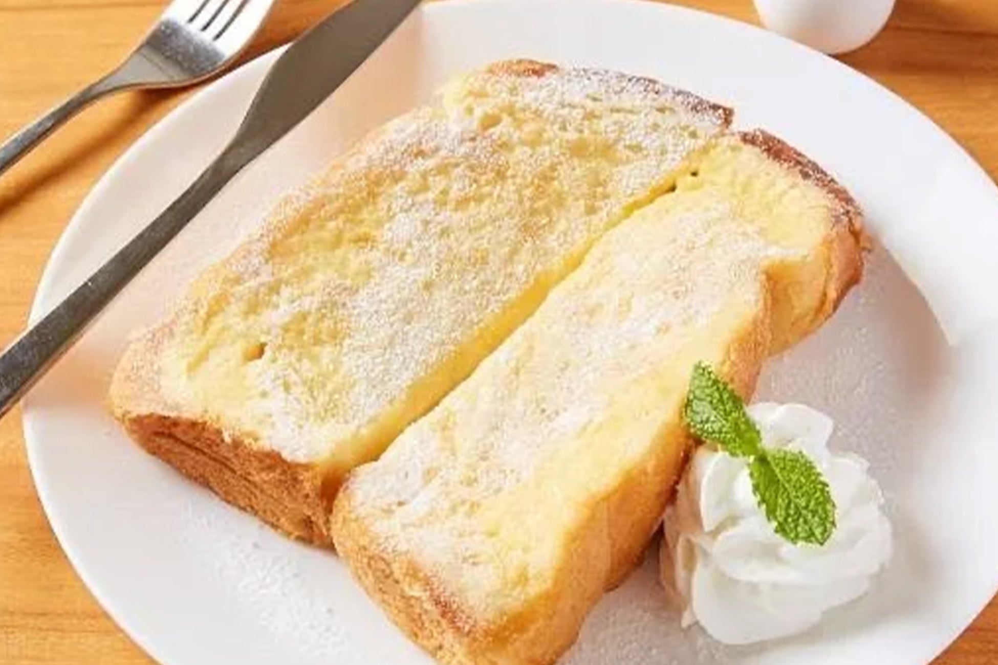 片面を6分間ずつ低温で蒸し焼きに、しっとりなめらかな食感を引き出したフレンチトーストに仕上げました。