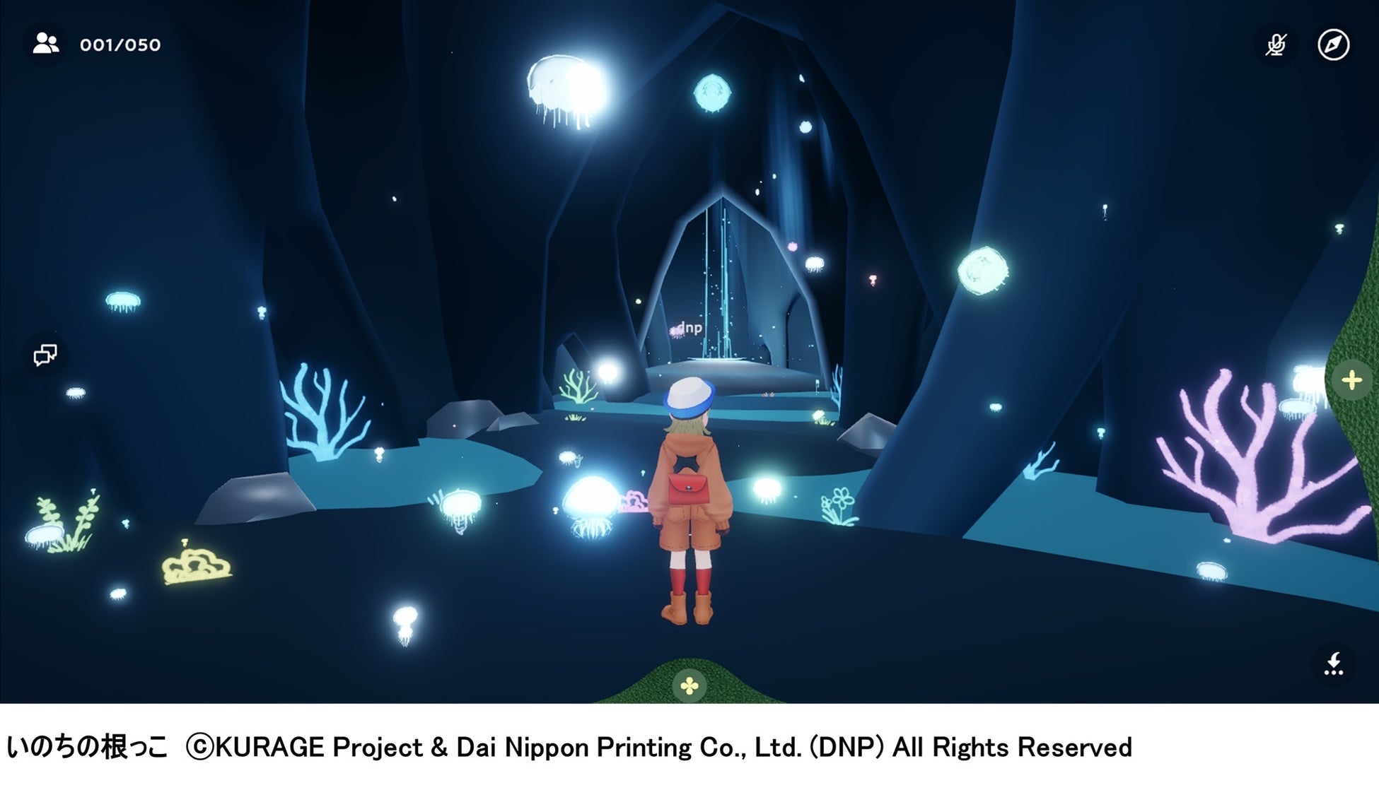 また、「いのちの根っこ」の空間は、リアル会場で体 験するためには予約が必要な「私を聴く」「私を祝う」の体験を一部再現し、リアル会場に訪れていない人がクラゲ館のコンセプトに触れることができたり、実際に会場で体験した人にはバーチャル空間で会場での体験を振り返ることができる内容となっています。