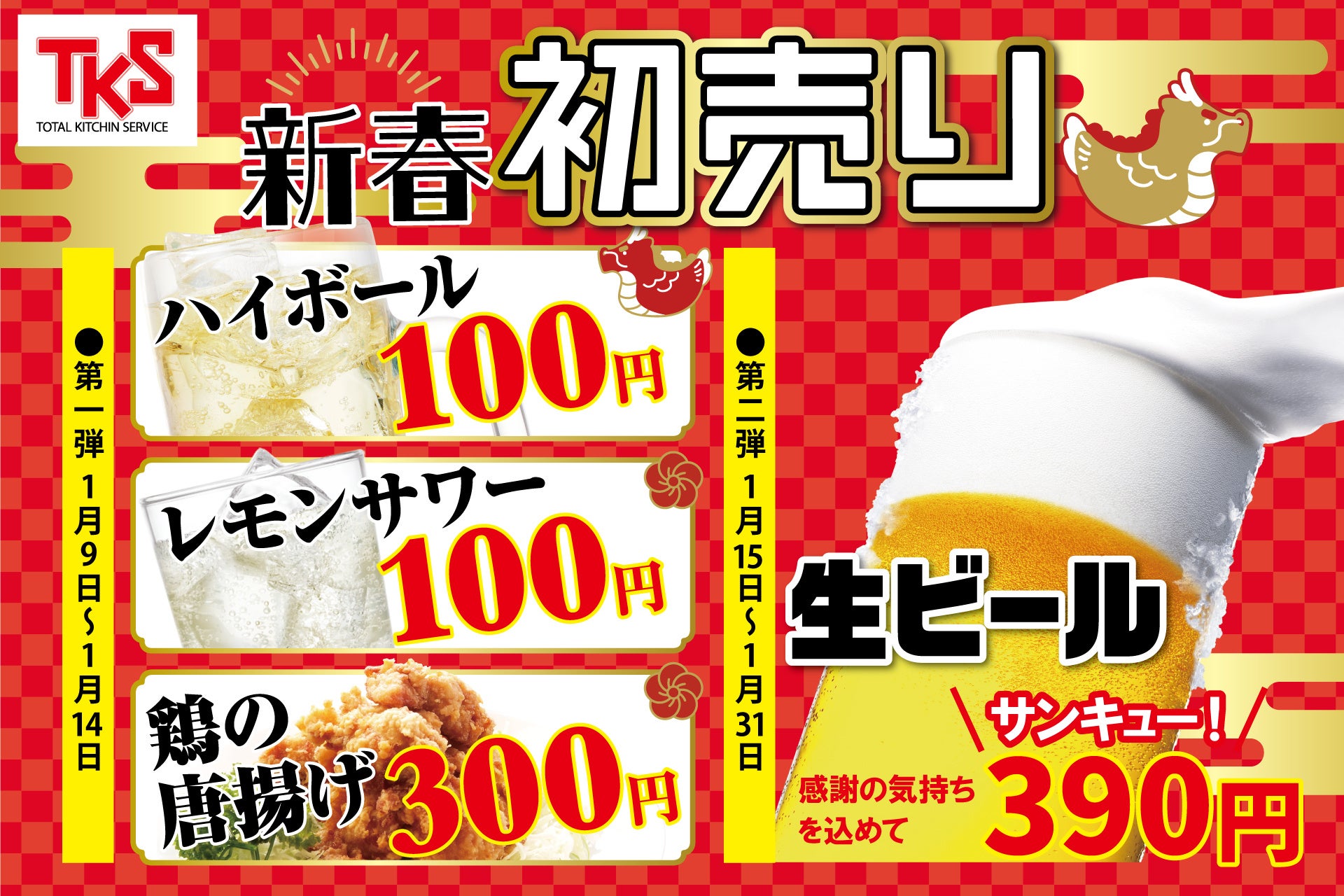 居酒屋など飲食店を運営する株式会社ティーケーエスが1月9日(火)より『初売り』を開催