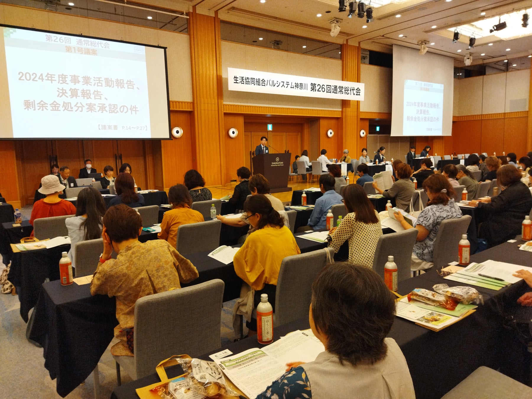 生活協同組合パルシステム神奈川(本部:横浜市港北区、理事長:藤田順子)は6月12日(木)、横浜ベイシェラトン ホテル&タワーズ(横浜市西区)で第26回通常総代会を開催し、提案された6議案すべてが可決、承認されました。総代会後に開催された理事会で代表理事の選定などが審議され、重任の藤田順子理事長をはじめ新たな役員体制が決まりました。