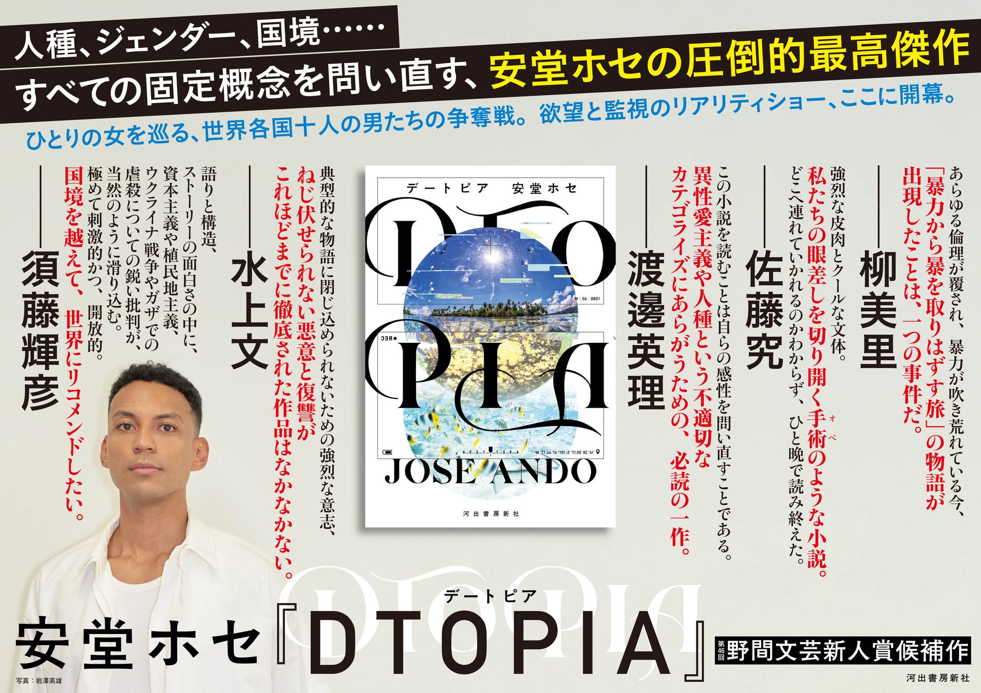 柳美里、佐藤究らが大絶賛! 安堂ホセの圧倒的最高傑作『DTOPIA(デートピア)』が、11月1日ついに発売!〈第46回野間文芸新人賞候補作〉