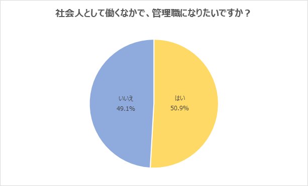 (2) 「管理職になりたい」と回答した学生は約半数。半数は「管理職になること」を希望していないことが明らかに