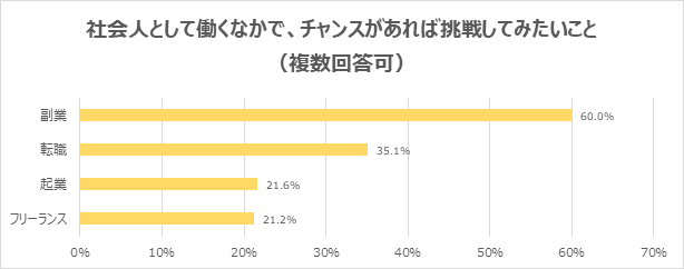 (4) 社会人として働くなかで、チャンスがあれば挑戦してみたいことは「副業」が最多