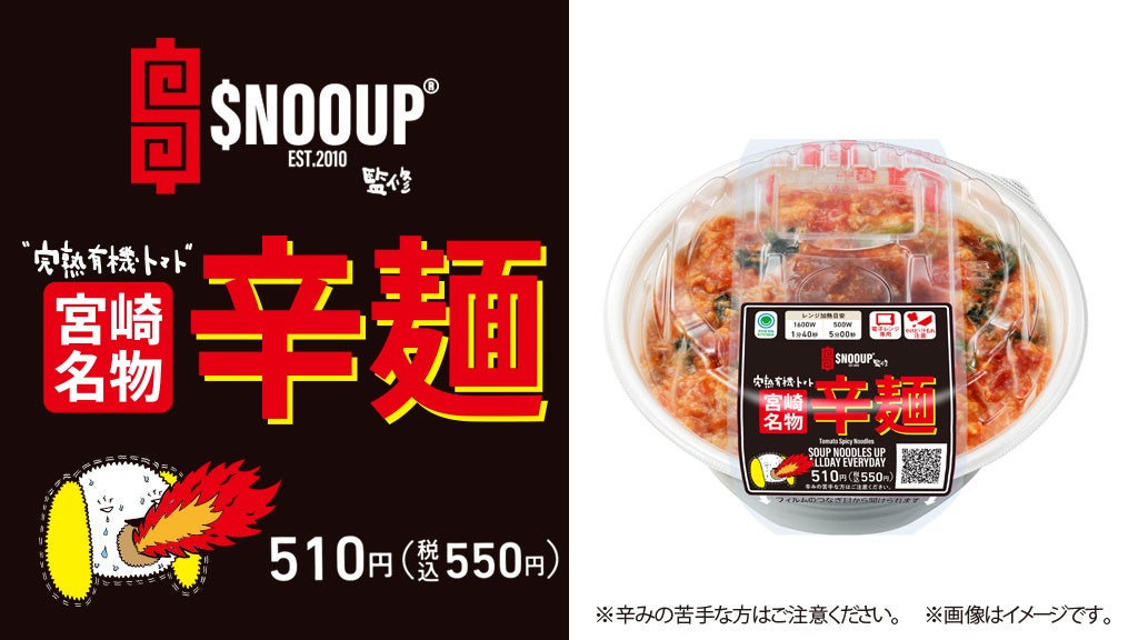 【九州地方と山口県・東京都・神奈川県の一部店舗限定】宮崎県・鹿児島県で人気のトマトラーメン専門店監修「SNOOUP(スヌープ)監修 宮崎名物 完熟トマト辛麺」発売!