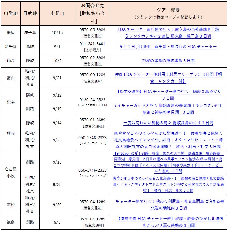 ※上記は、現在一般販売している旅行ツアーの一部となります。全てのチャーター便・遊覧フライトの運航予定を記載しているものではありませんのでご了承ください。