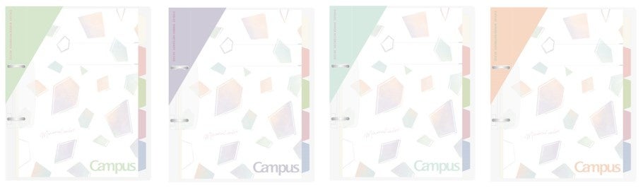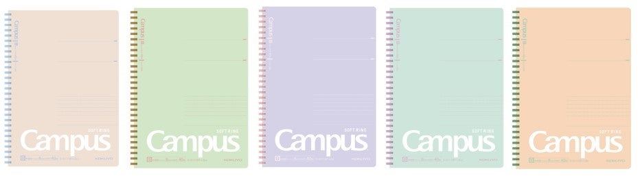 今回キャンパスブランドは、アイテム数を拡大して6種類が”ミネラルカラー”の仲間入りをしました。昨年からの継続アイテム「パックノート」、「ソフトリングノート」に加え、近年の学びに適した「ノートのように使えるバインダー」「キャンパスノート ハーフサイズ」「はがせるノート型ルーズリーフ」「プリントもとじやすい2穴ルーズリーフバインダー」の6種全23品番と、昨年よりさらに拡充しています。