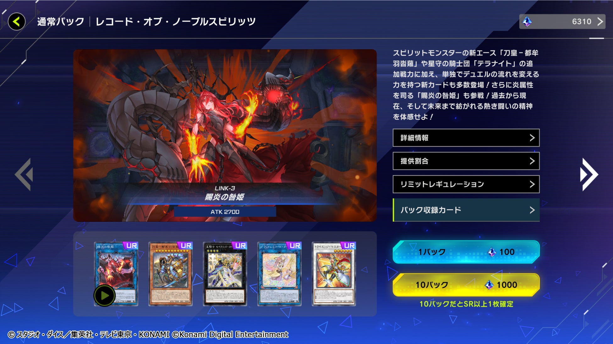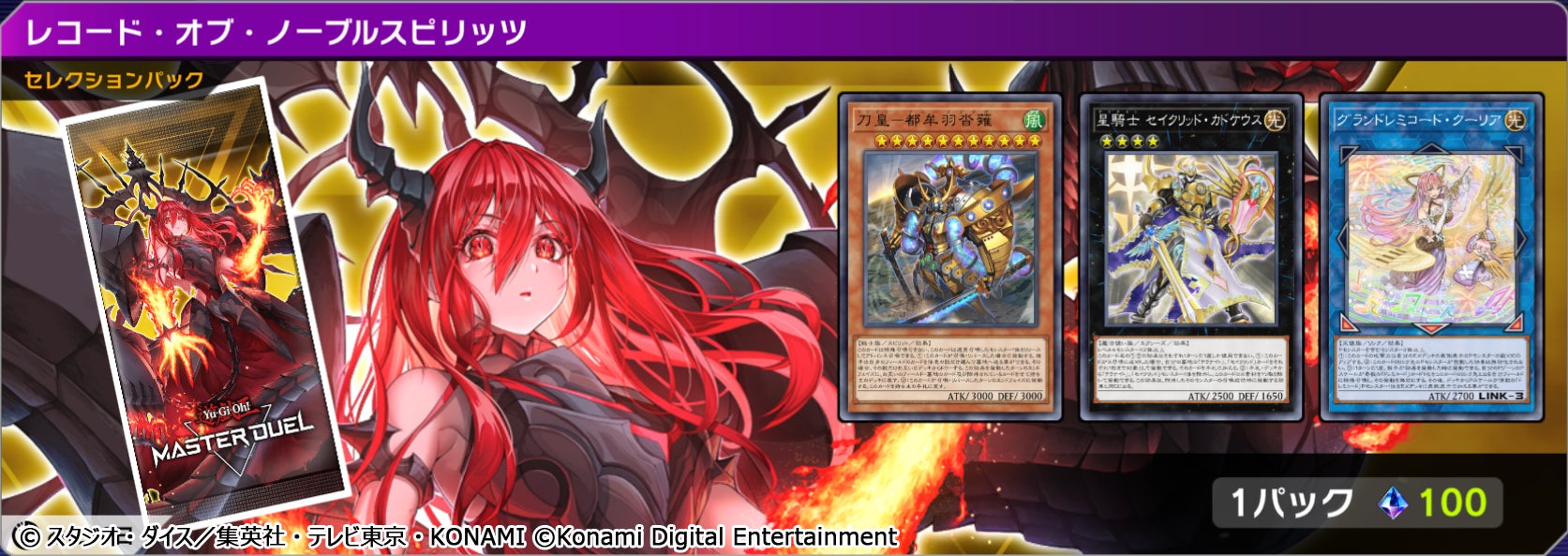 炎属性モンスターと相性抜群の効果を持った新カード「賜炎の咎姫」は、『遊戯王 マスターデュエル』で本日登場したセレクションパック「レコード・オブ・ノーブルスピリッツ」に収録されています。『遊戯王OCG』で新たに登場したカードが『遊戯王 マスターデュエル』でも同時期にプレー可能となるのは今回が初。「賜炎の咎姫」を使って、『遊戯王OCG』と『遊戯王 マスターデュエル』の双方でお楽しみください。さらに、同セレクションパックには、「星騎士 セイクリッド・カドケウス」や「トライエッジ・マスター」など、その他新規カードも多数収録しています。