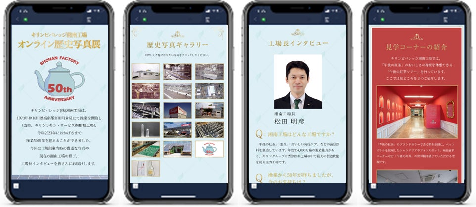 50周年への思いについて綴っているコーナー」を展開しており、キリンビバレッジ湘南工場の