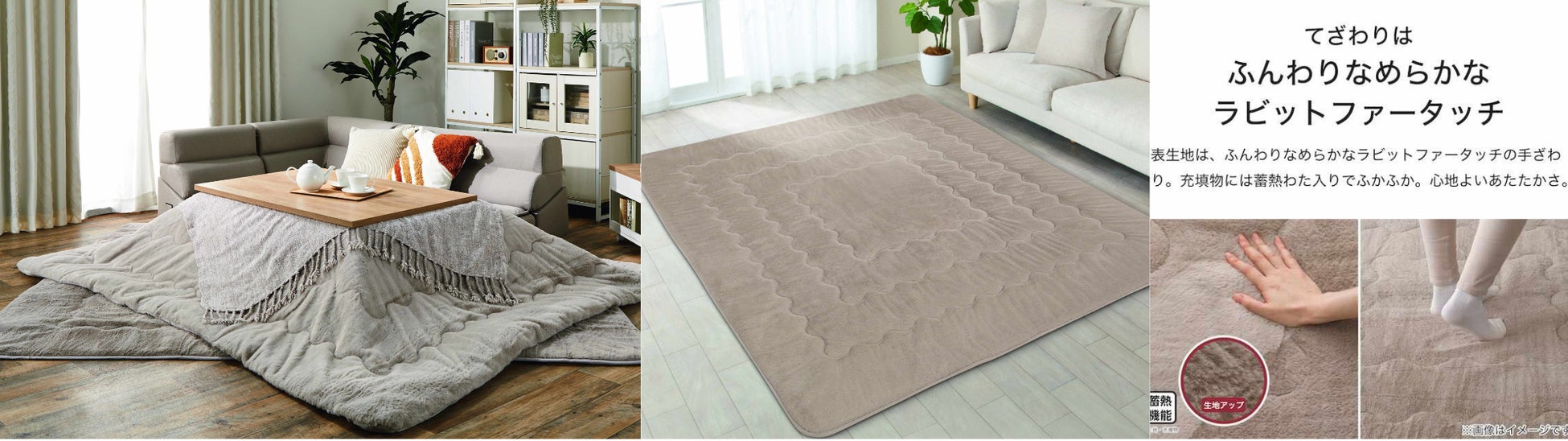 2024年モデルこたつ布団 販売開始!人気の「ふんわりなめらか」ラビットファータッチシリーズ全国で販売開始。